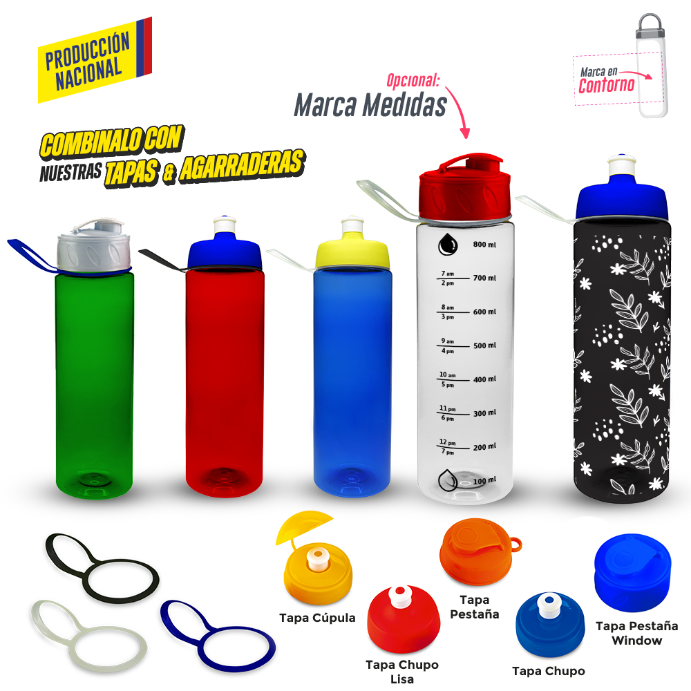 Botilito en PET: Libre de BPA, atóxico 100%, reciclable y reutilizable. Apto para uso en bebidas frías únicamente. No lavar con agua caliente. Tapa en ABS super resistente. Con empaque bolsa individual.