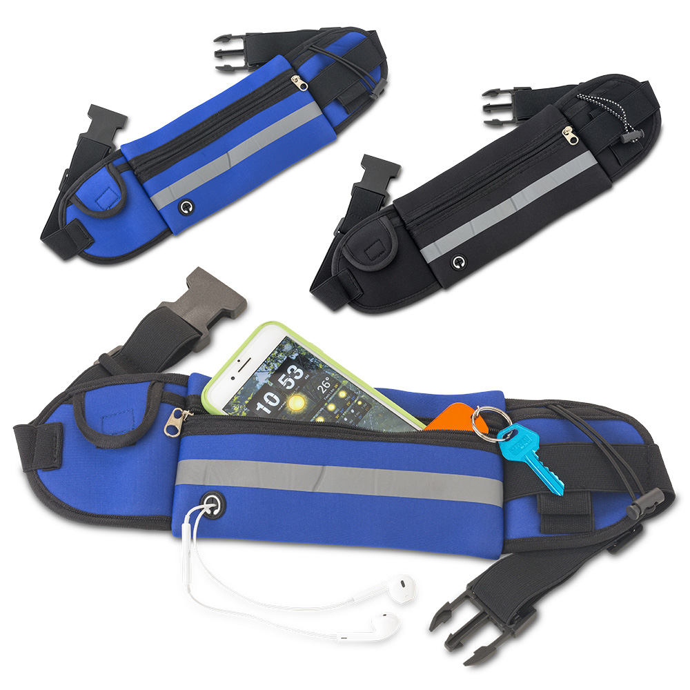 Canguro reflectivo en poliéster con bolsillo y soporte para botilito pequeño (no incluye botilito)