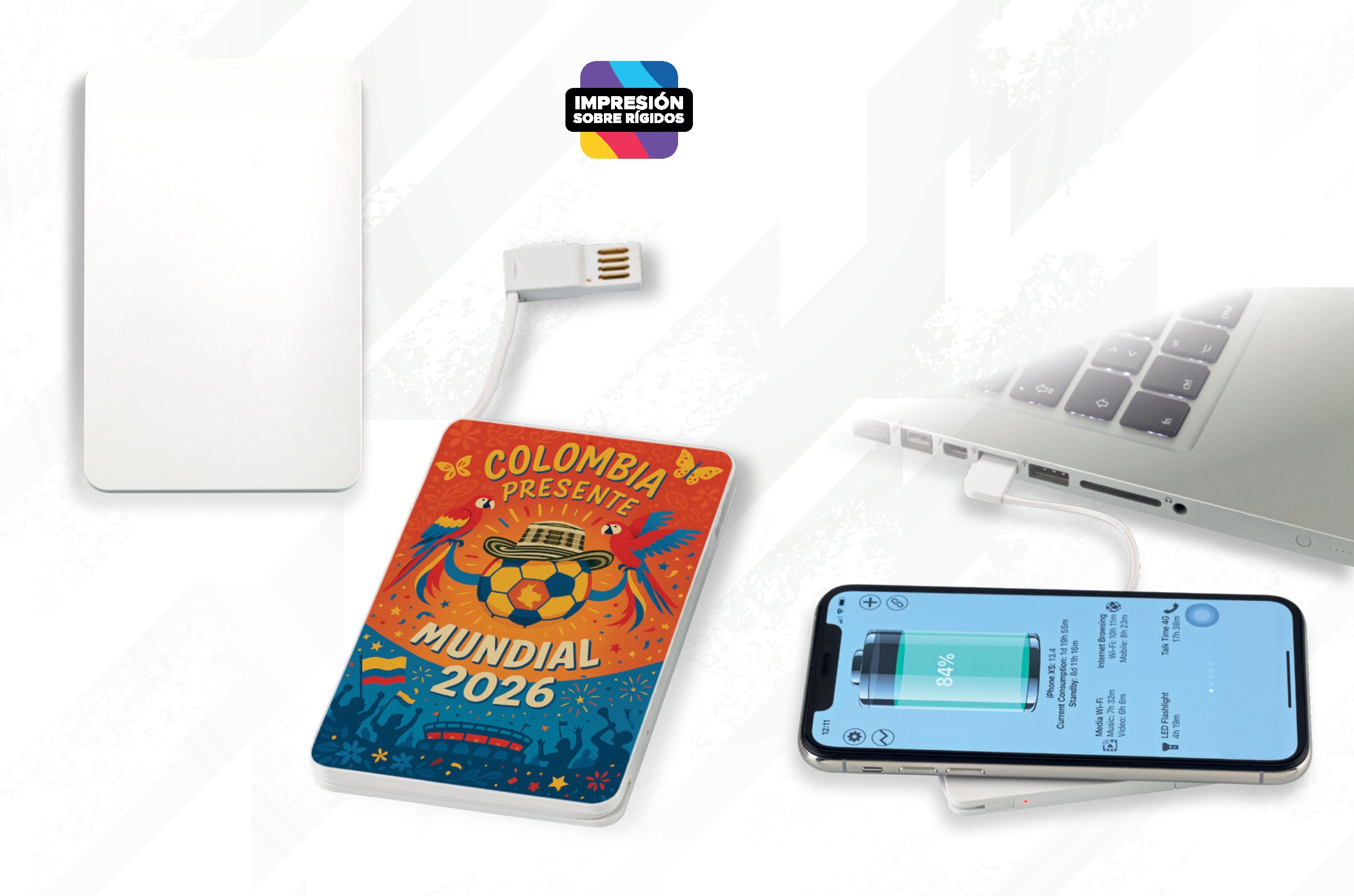 rnMarca: 9.2 cm x 5.8 cm. Impresión digital full color sobre rígidos.