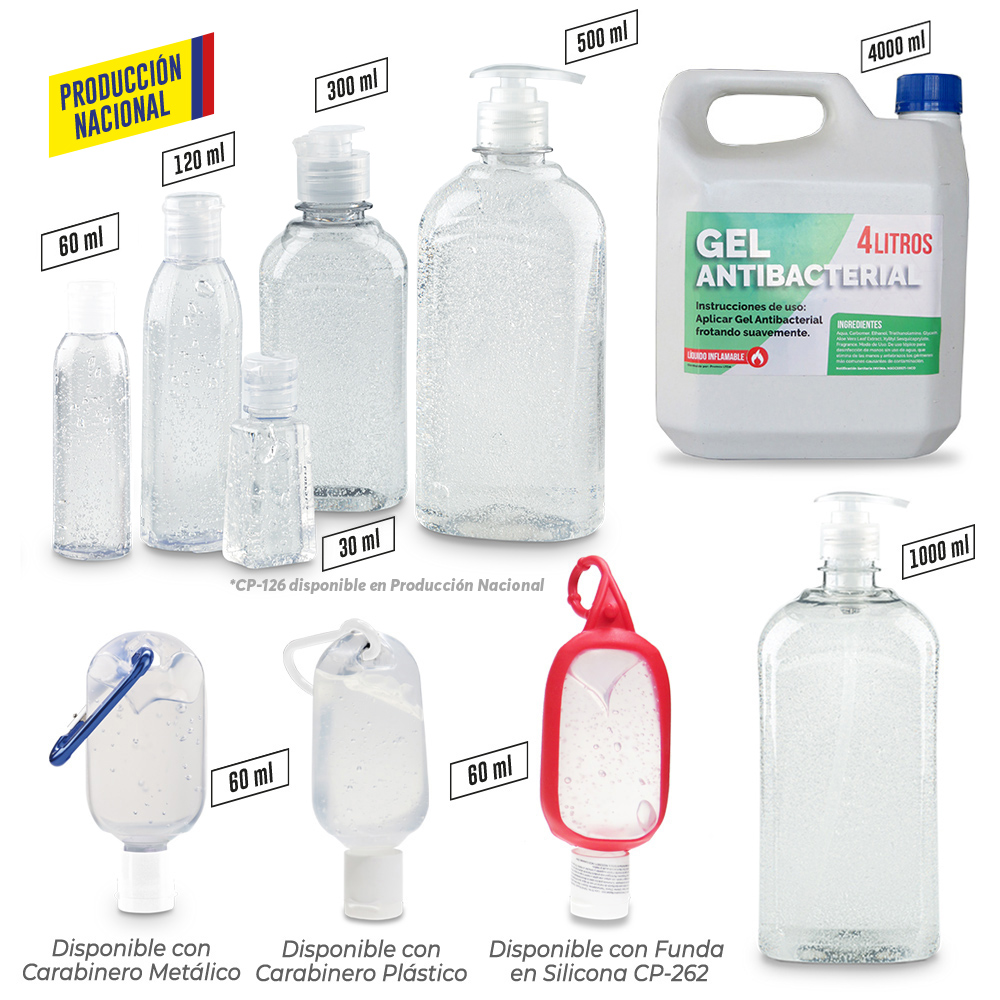 Opción 3) 60ml gel con carabinero plástico. Opción 4) 60ml gel con carabinero métálico (Ver LL-49).