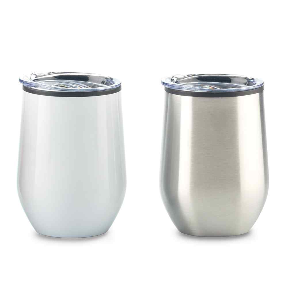 Mug metálico con interior plástico y tapa. La tapa es una tapa protectora, no es tapa de seguridad. Empaque caja individual. Para sublimación.